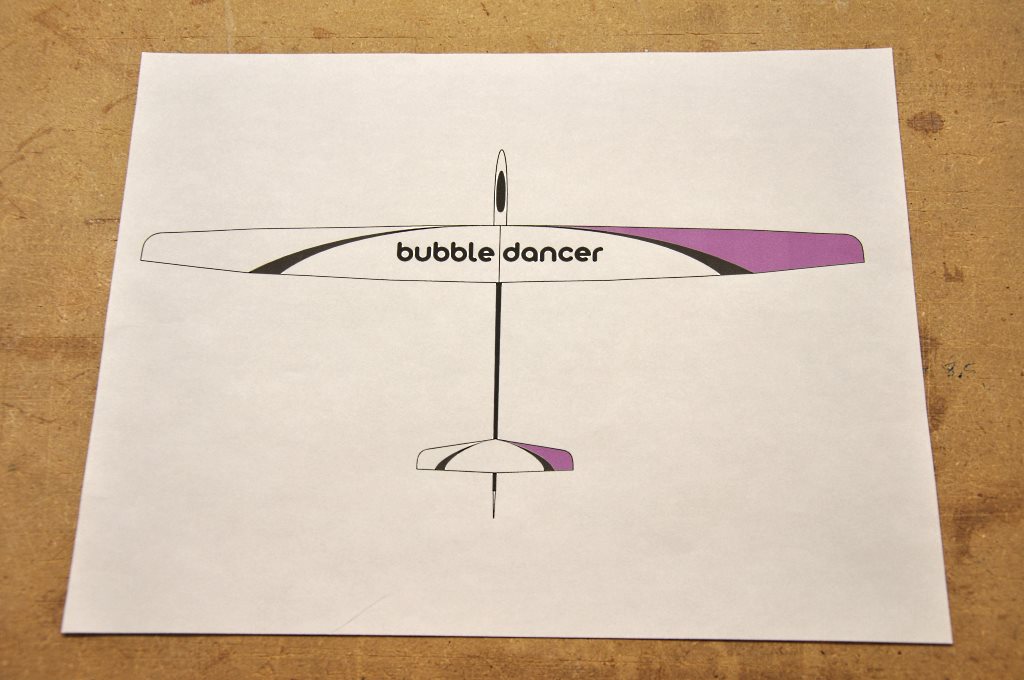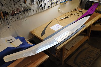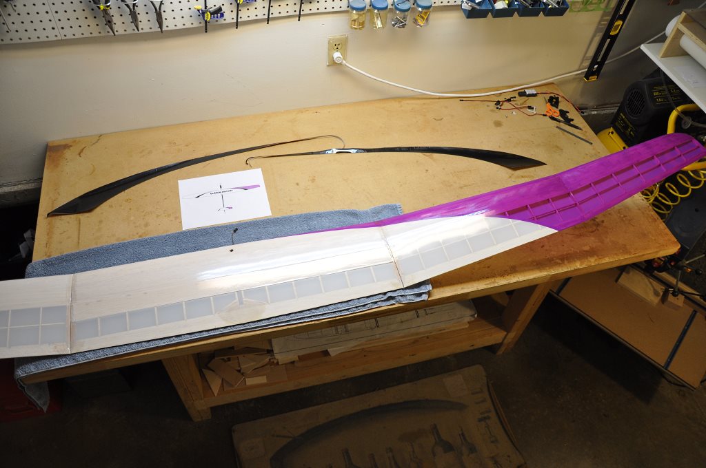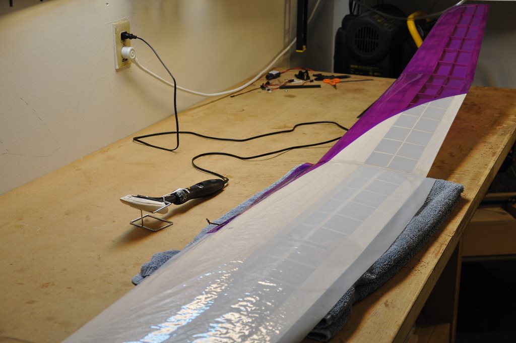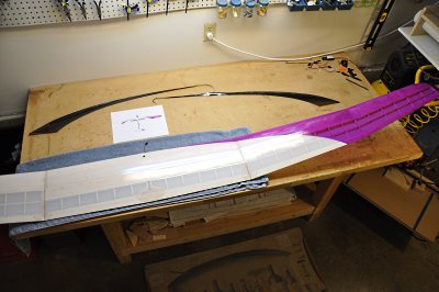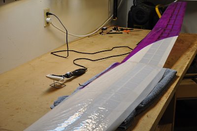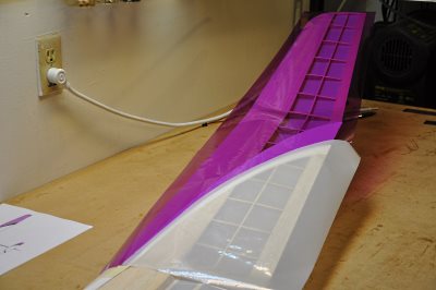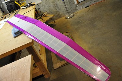 I used that template to guide me in cutting a section of white and a section of purple Ultracote that would go on the right wingtip.