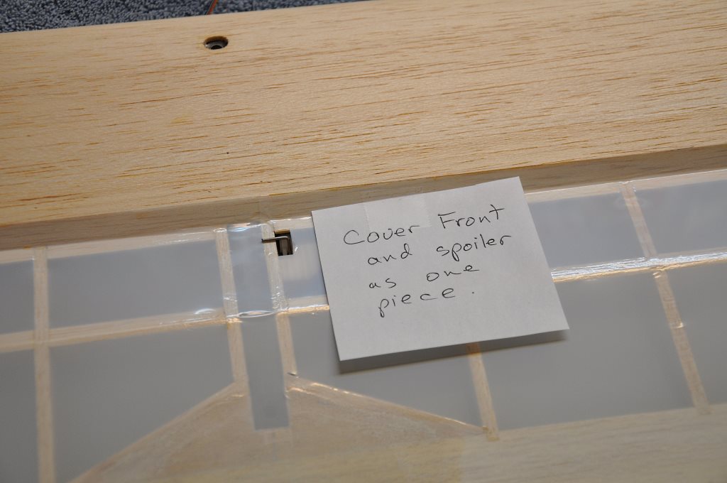 I taped the spoiler into position and started covering from the leading edge - eventually bringing it over the spoiler and onto the 1/4 overlap from the bottom. I then cut the excess to a nice 3/16" flap.