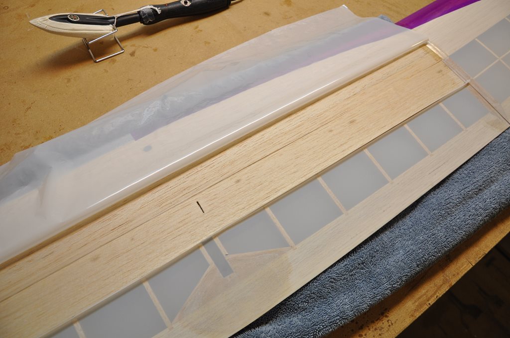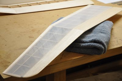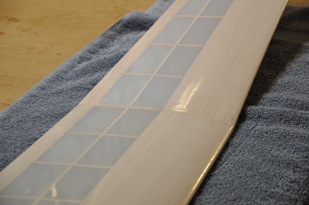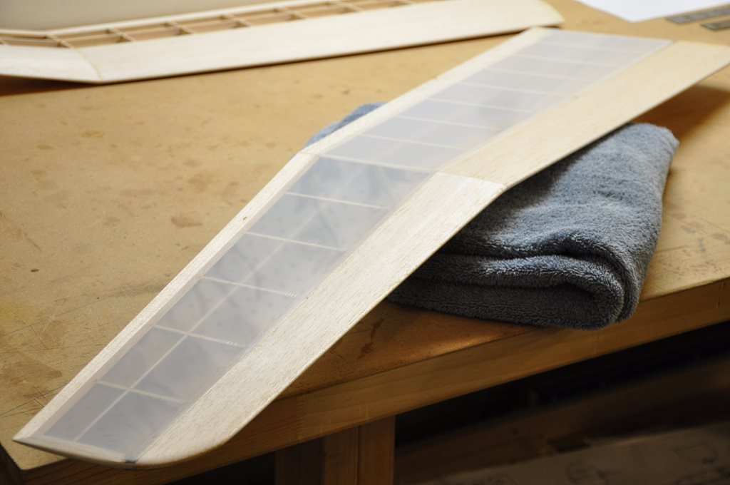 A very nice compound curved single sheet covering of the mid and tip panels with no covering overlap at the joint.