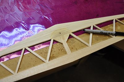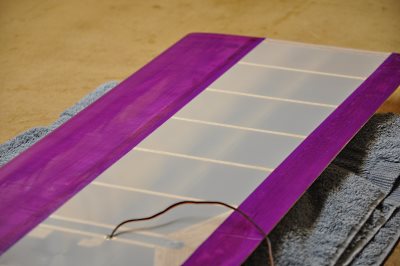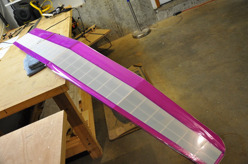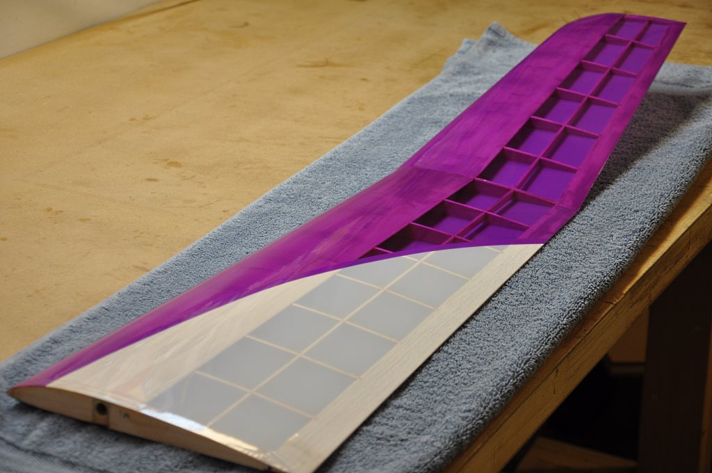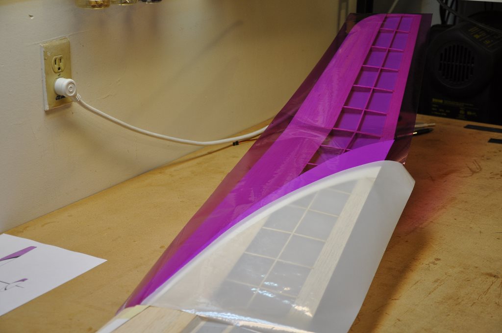 I then tacked to purple covering over the white to make a single sheet of covering for the entire wingtip.