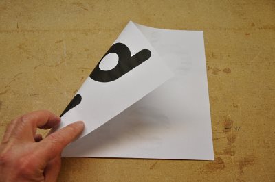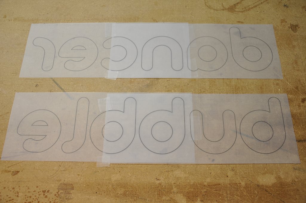After scratching my head a bit on the issue, I grabbed some velum paper that I had (the primary need here was transparency) and printed an outline version of my letters in reverse.