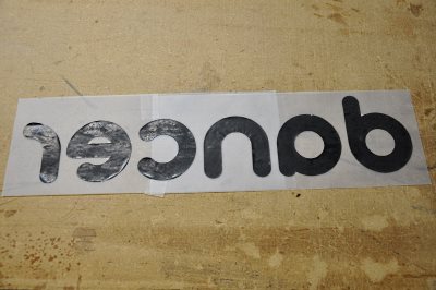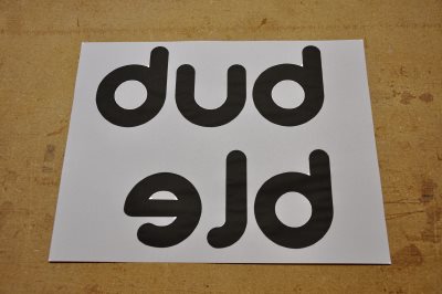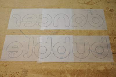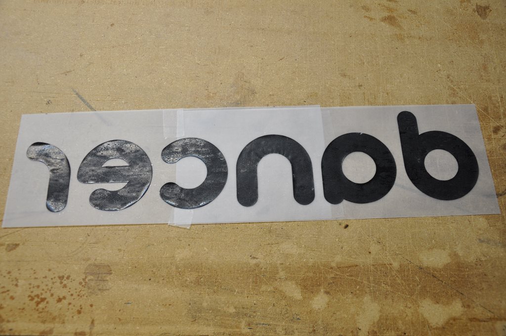 I printed out and finalized the size and location of the words and then generated 2 "cutting sheets" by printing the letters in reverse.