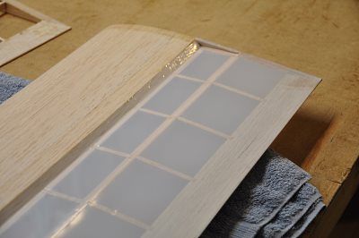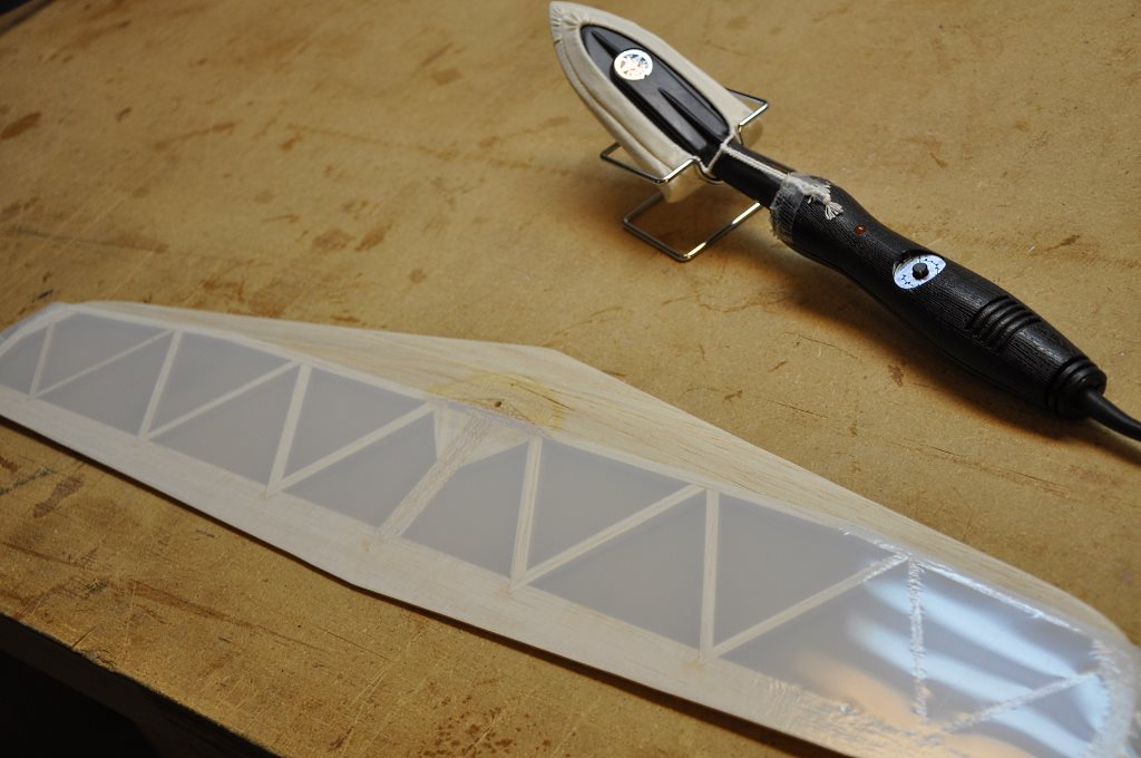 This sort of design is very simple since I can use a long straight edge and my X-Acto knife to cut the covering to the exact shape needed before placing it on the wing.