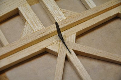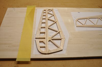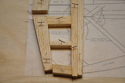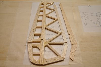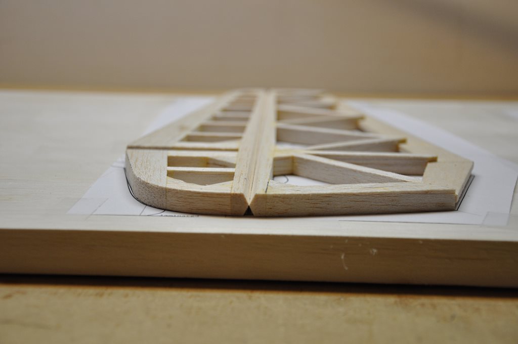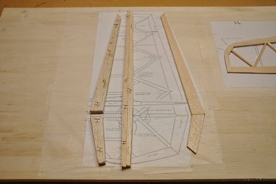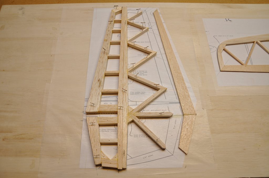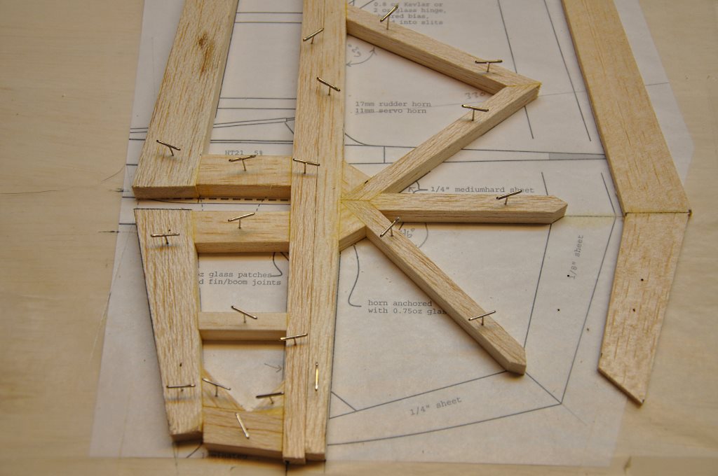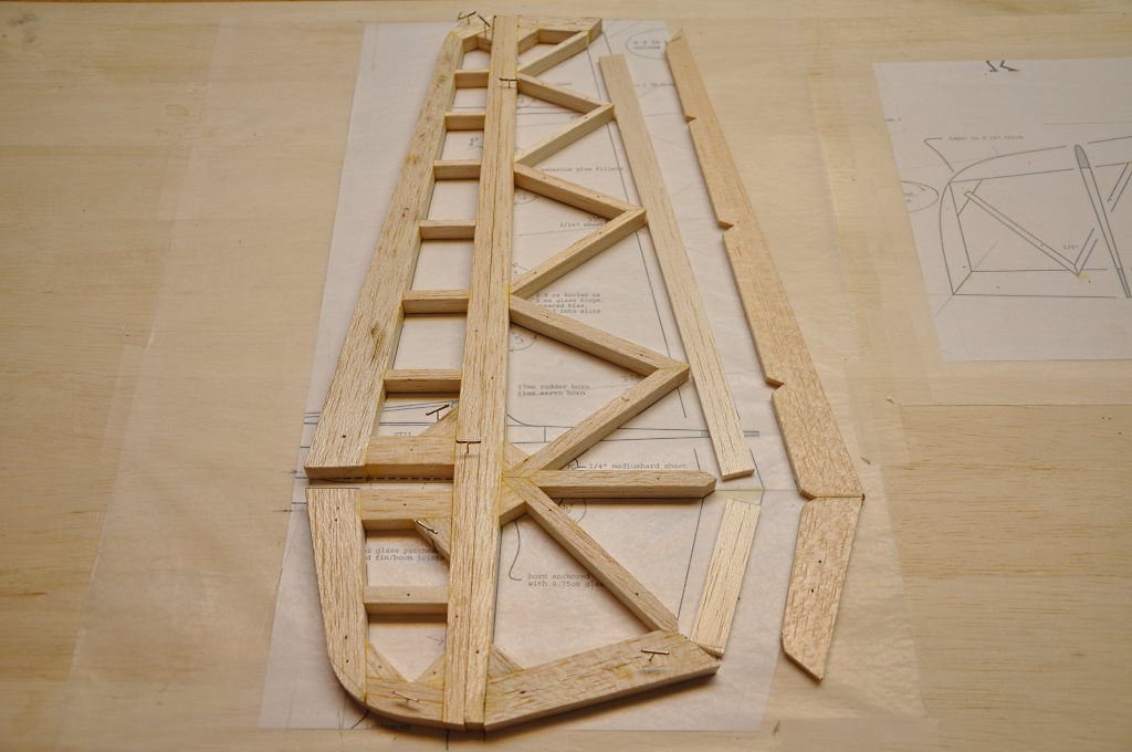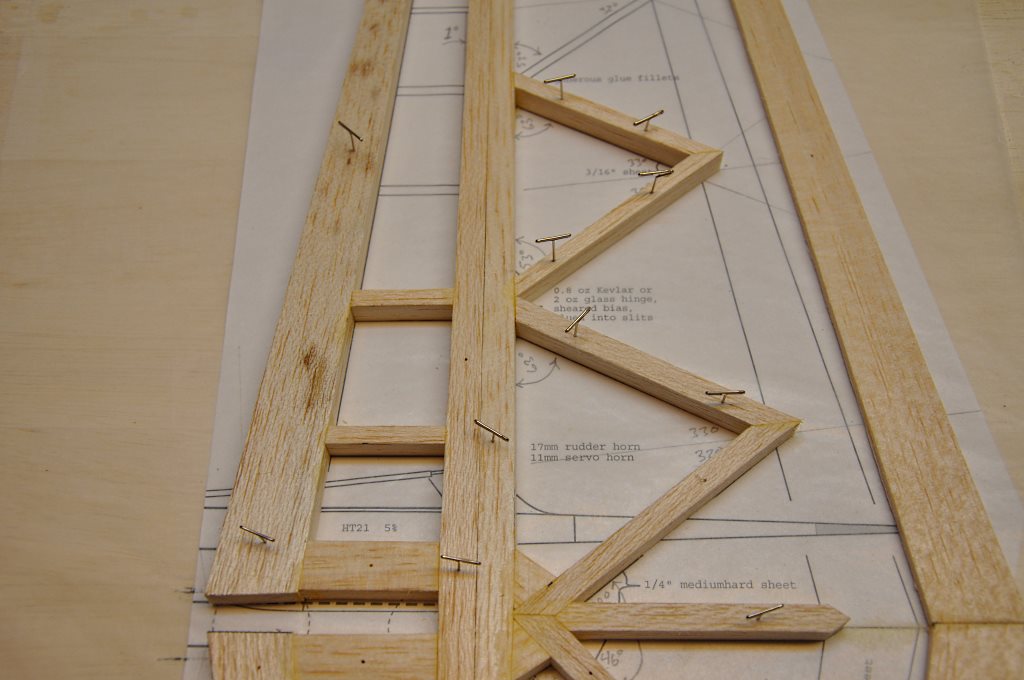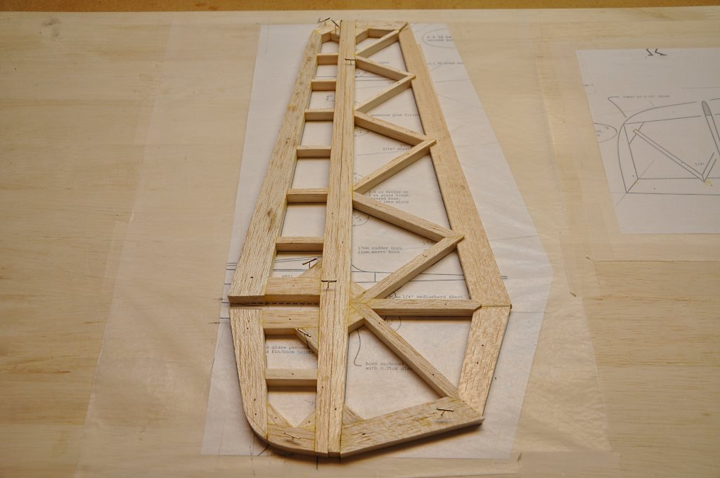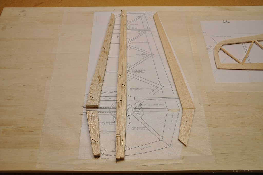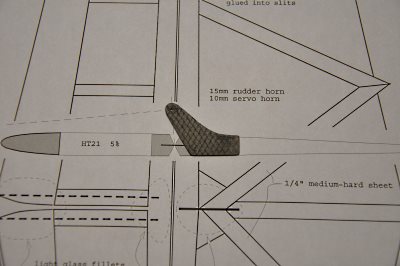 Note that the plans call for "medium hard" balsa sheet for the 3 ribs that radiate from the rudder hinge point.