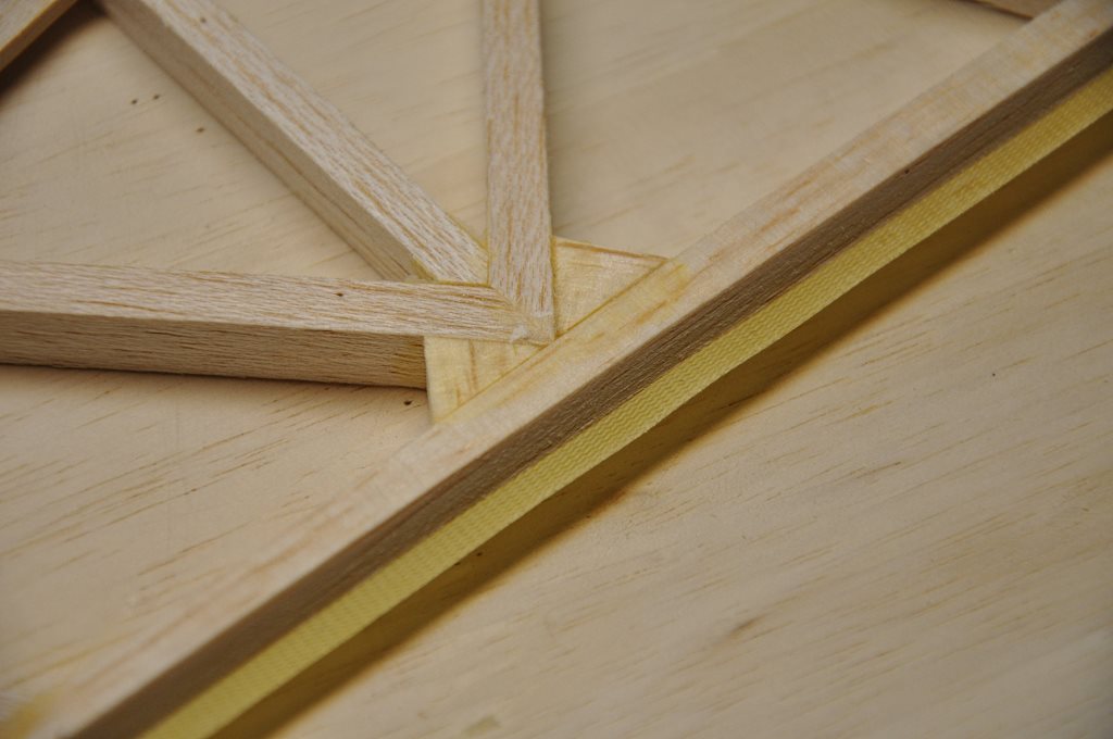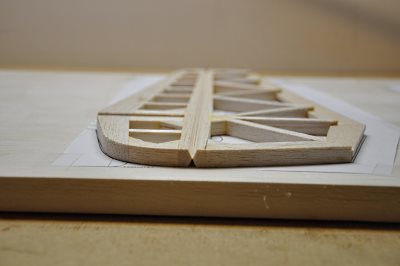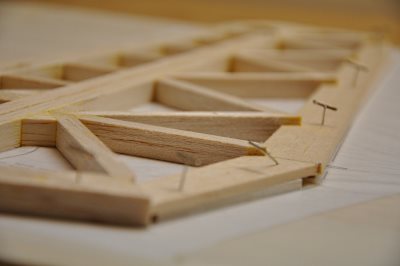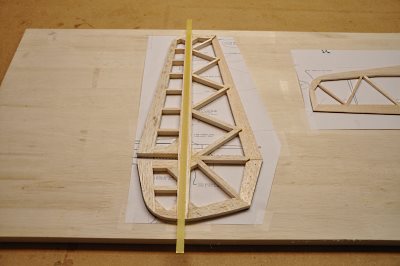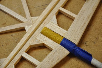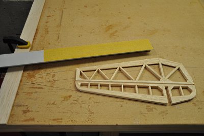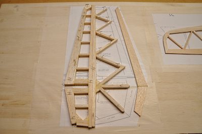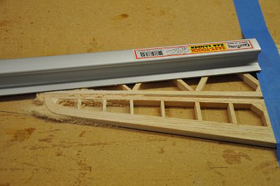 Almost all the balsa pieces are 3/8" thick, but you can see that the trailing edge is only 1/8 inch thick.