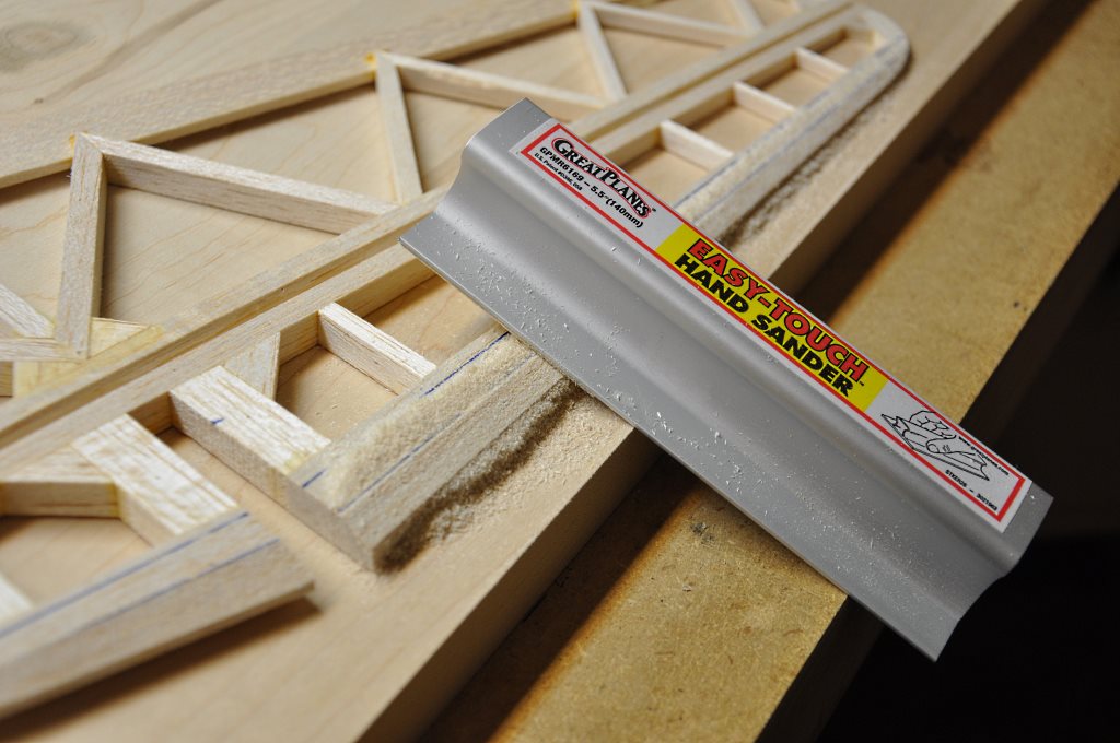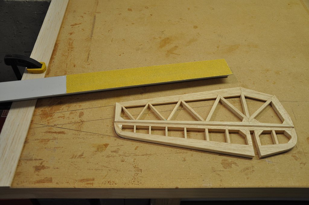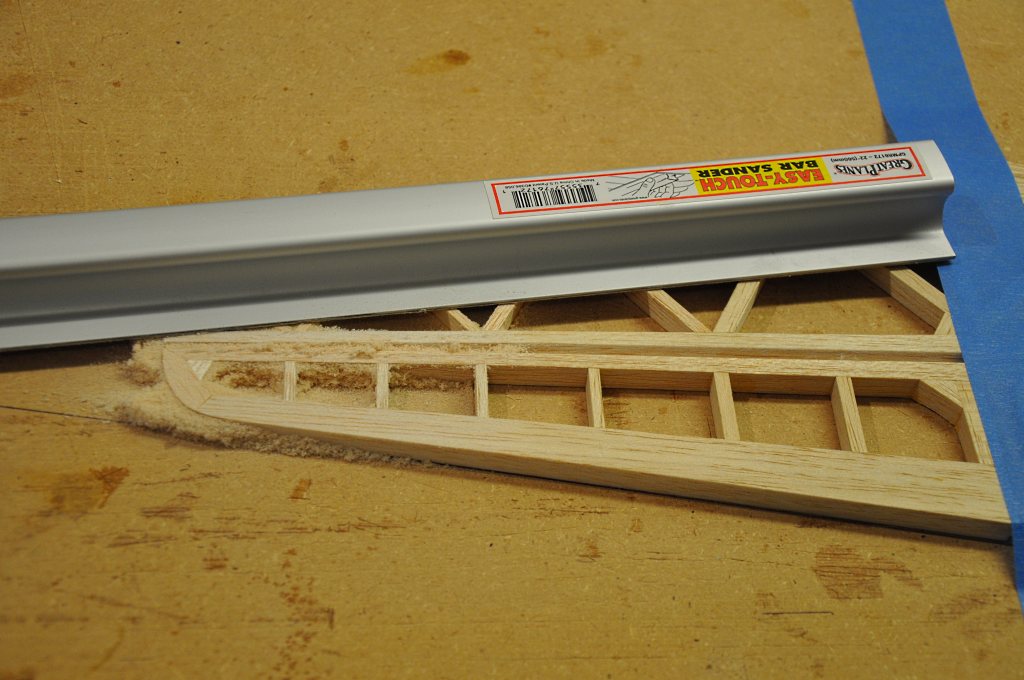 Then using the slope values given on the plans, I set the fin on a block of wood and began sanding up to the lines.