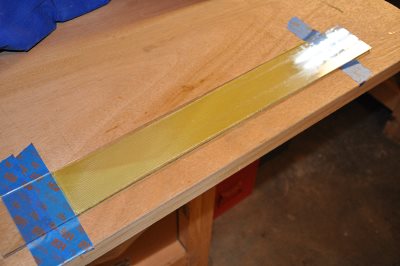I taped across the fin at the location where the tapering ends to protect the wood from inadvertent sanding.