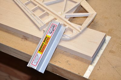 Next, I placed a half-thickness balsa shim at the bench edge on which the smooth portion of the sanding bar would rest.