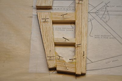 I started by cutting the various long pieces to shape and pinning them to my building board.