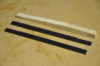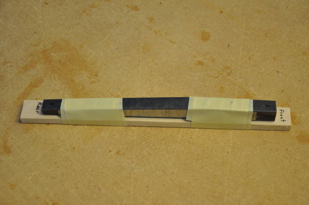 The taller center wood is vertical grain balsa and the two end blocks are basswood.