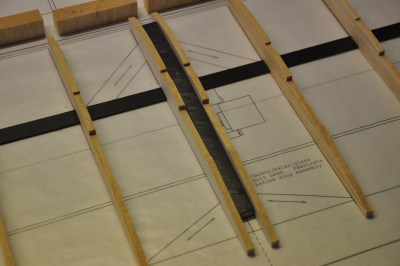 I also checked my progress against the plans (from the top, as seen here and from the side on the fuselage drawings.