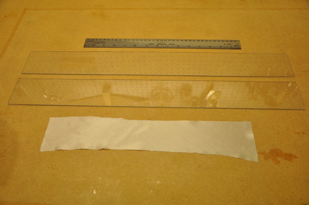 I prepared two plexiglass pieces with which I could sandwich the fiberglass.