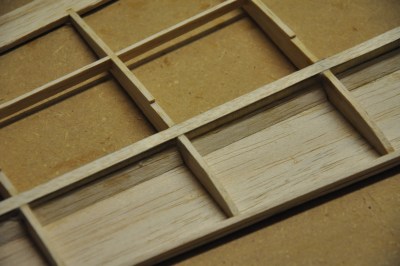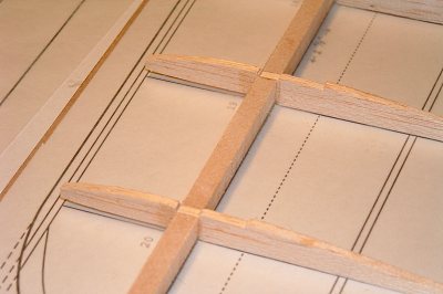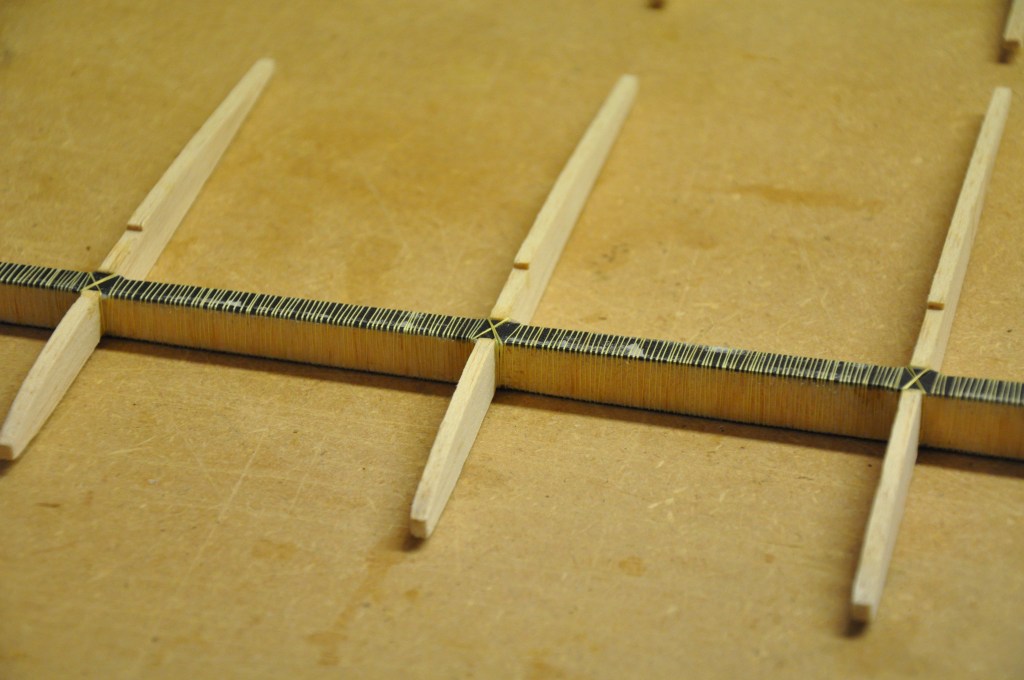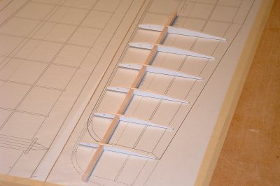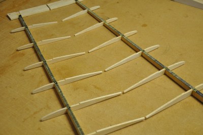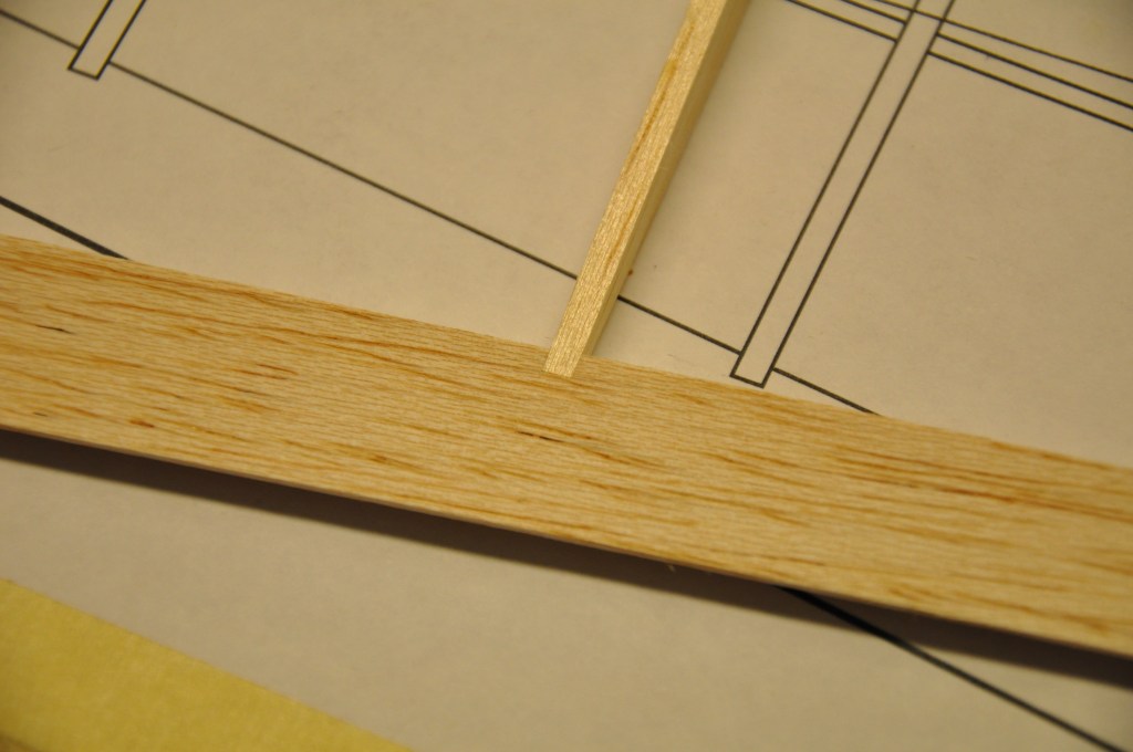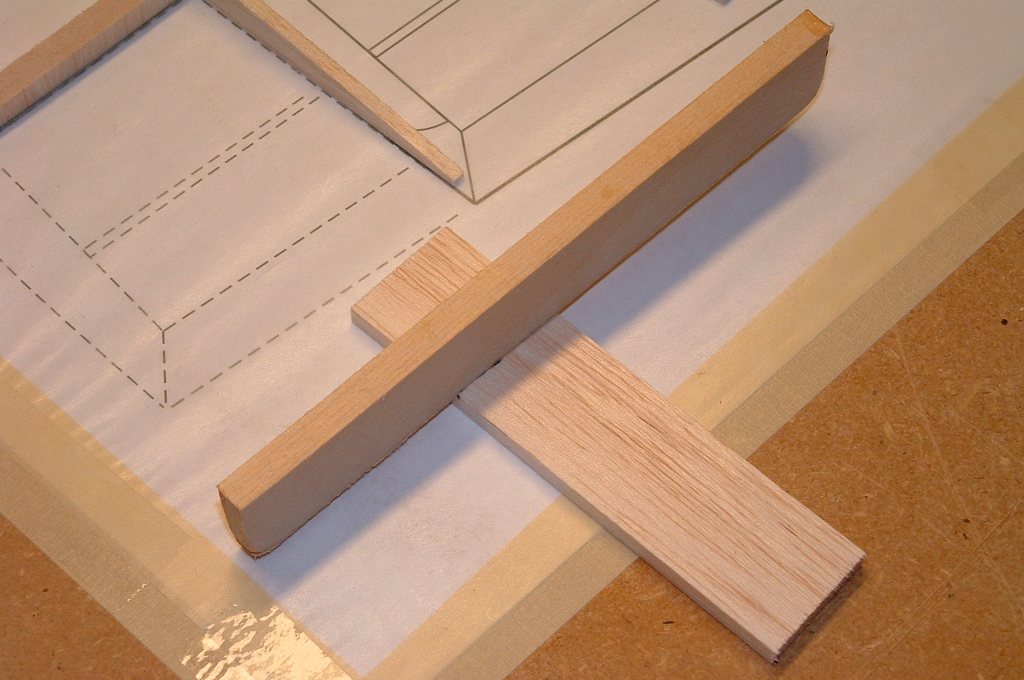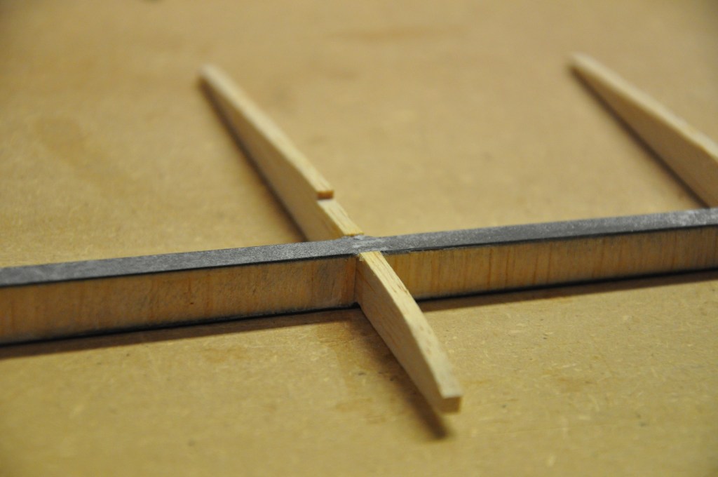Note: you'll notice that the triangle stock is thicker than the plans call for. None of my local hobby stores carried the right size - and I didn't feel like making my own...