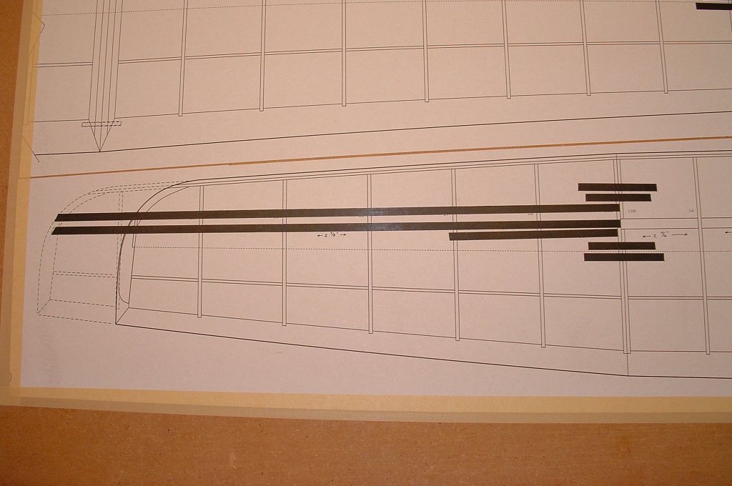 I then stuck the masking tape shim in place over the plans to shim up the spar area.