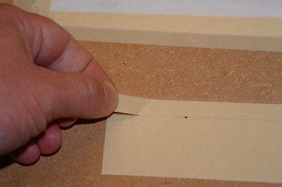 So I layered out three strips long enough for the tip panel shim and using a long straight-edge and my Xacto, I trued up one edge of the tape, marked off a 1/4 inch strip and sliced again to complete the shim.