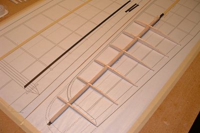 In preparation for building, I covered the plans with wax paper to prevent glue sticking to my plans.