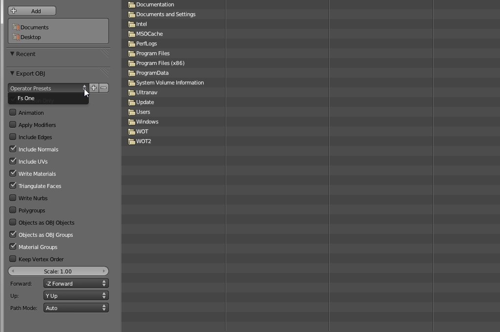 Since I will be creating a model for FS One RC Simulator, I checked the requirements page on their website to verify the format that they use. For FS One we need to export our Blender models in the .obj file format.