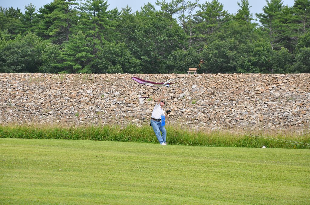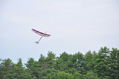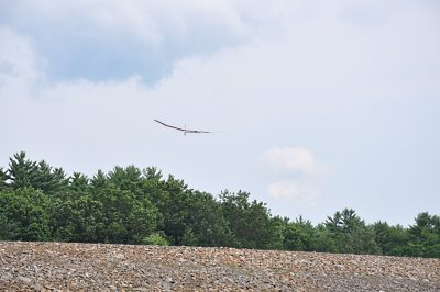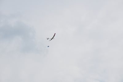 With a bit of a hand-toss to launch, start walking backward to pull the glider skyward.