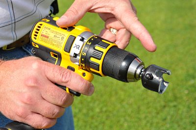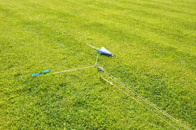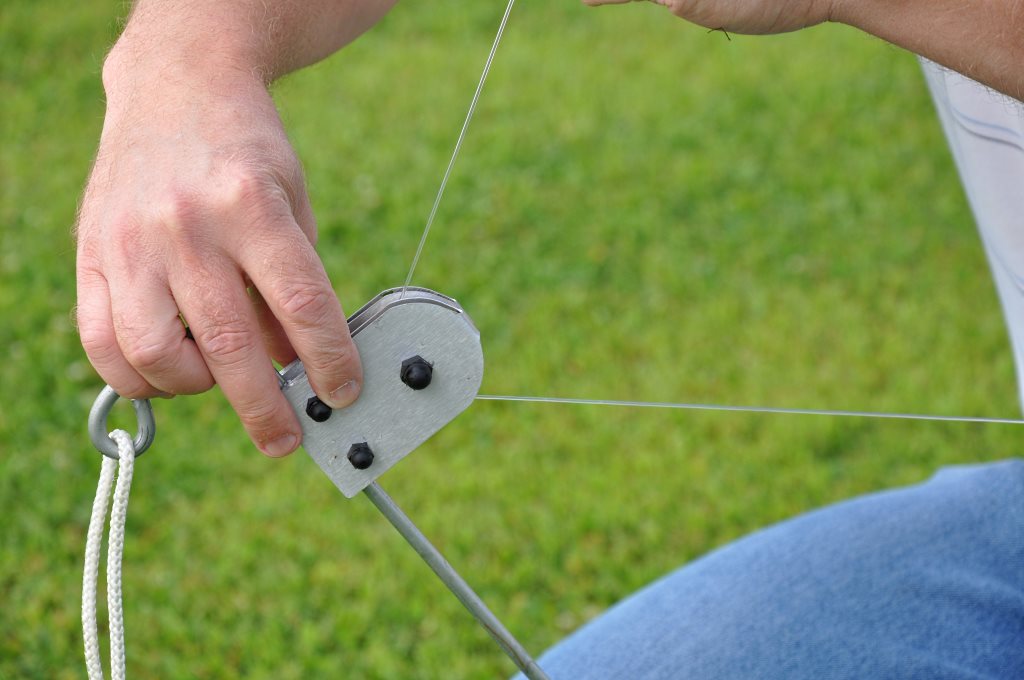 It helps to angle the stake so that one edge of the reel rubs on the ground. This bit of friction prevents the reel from freewheeling and allowing the line to go slack as you unwind the line.