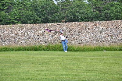 Walk backwards a step or two to tension the line a bit (the monofilament stretches, providing a bit of pre-loading to the line) - this will help you get initial flight speed.