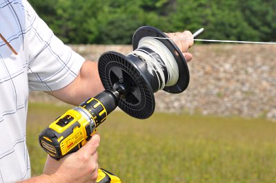 Note: An alternative way to wind, is to insert the adapter into the spool right where it sits on the ground. This way the friction of the spool edge against the ground will prevent the line from winding on loose because of backlash.